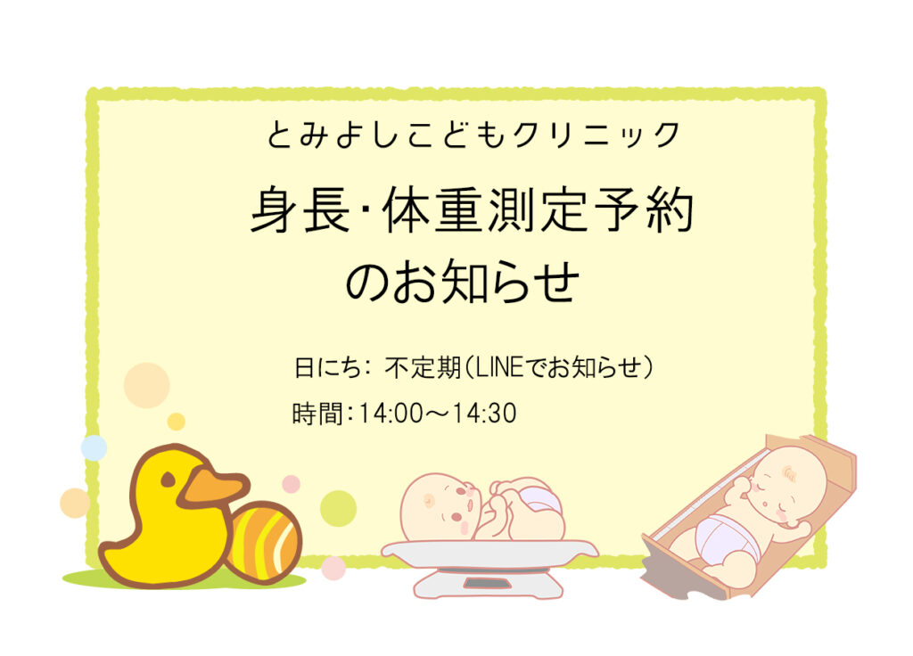 身長・体重測定の枠ができましたら、LINEでお知らせしますのでどうぞよろしくお願いいたします。