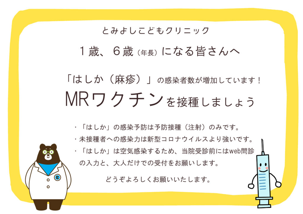 今日はMRワクチン2期(2回目)のお知らせです。