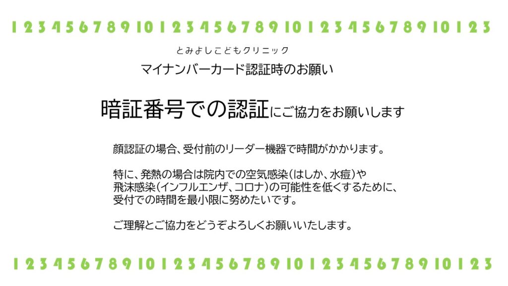 受付でマイナンバーカード認証する際のお願いです。