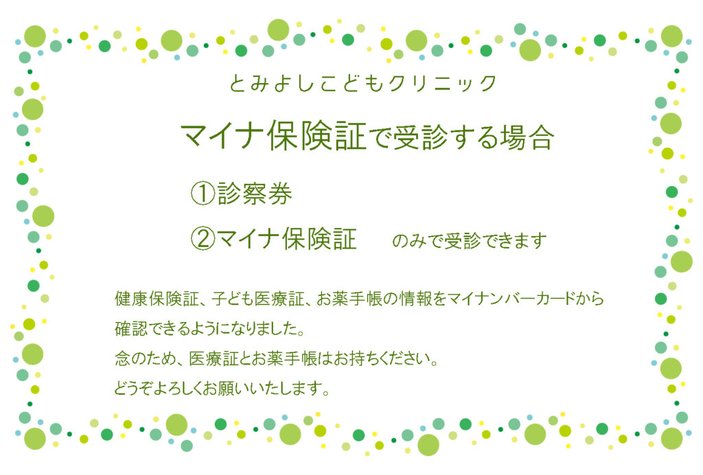 遅くなりましたが、当院もマイナカードで「子ども医療証」情報が確認できるようになりました。